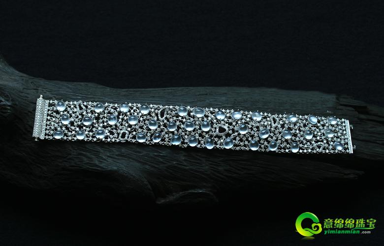 緬甸老坑玻璃種天然翡翠A18K白金天然鉆石玉手鏈