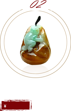 蒹葭伊人天然緬甸A貨翡翠老坑黃加綠生肖玉猴掛件- 一夜成侯