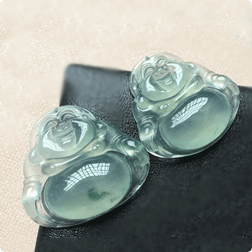 眉似新月天然緬甸翡翠A貨老坑冰種飄花佛公情侶配對掛件