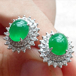 ¥57600 ¥86400 立即購買馥郁芬芳天然緬甸翡翠A貨老坑高冰正陽綠18K金南非鉆鑲金蛋面耳釘 -