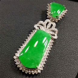 ¥100000 ¥150000 立即購買燦若云霞天然緬甸A貨翡翠老坑冰種陽綠方牌掛件 -