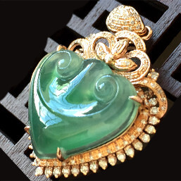 ¥29000 ¥43500 立即購買琪花瑤草天然緬甸翡翠A貨老坑冰種滿綠鑲金鞍面掛件 -
