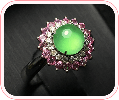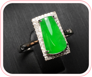 青梅柳夢天然緬甸翡翠A貨老坑冰種滿綠蛋面戒指