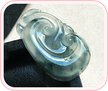 天然緬甸A貨翡翠老坑冰種飄花如意情侶對佩掛件